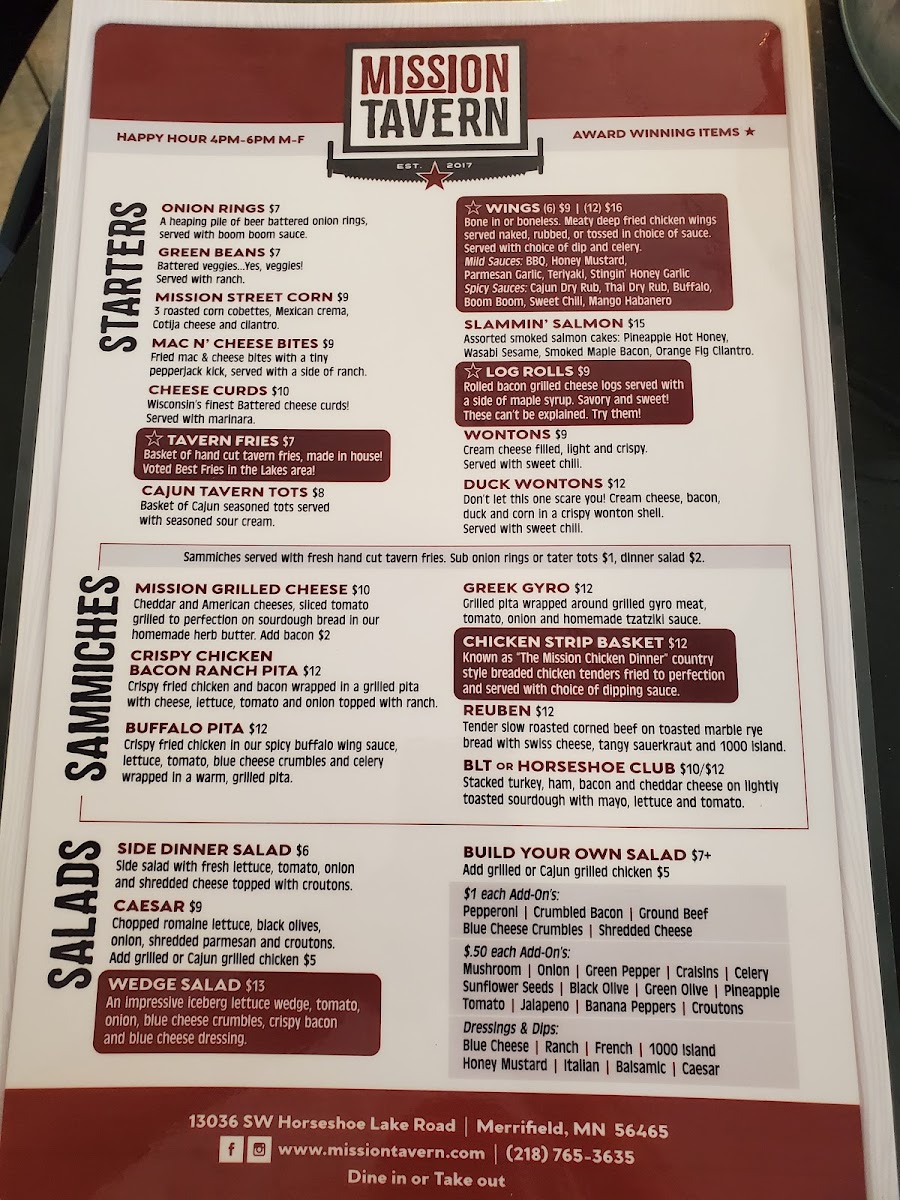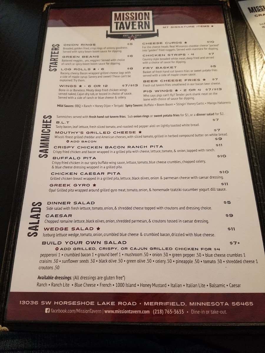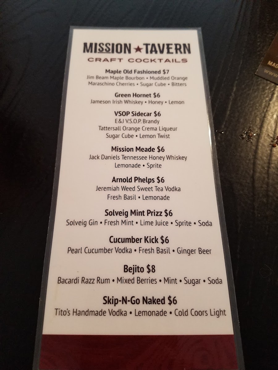 Mission Tavern Menu